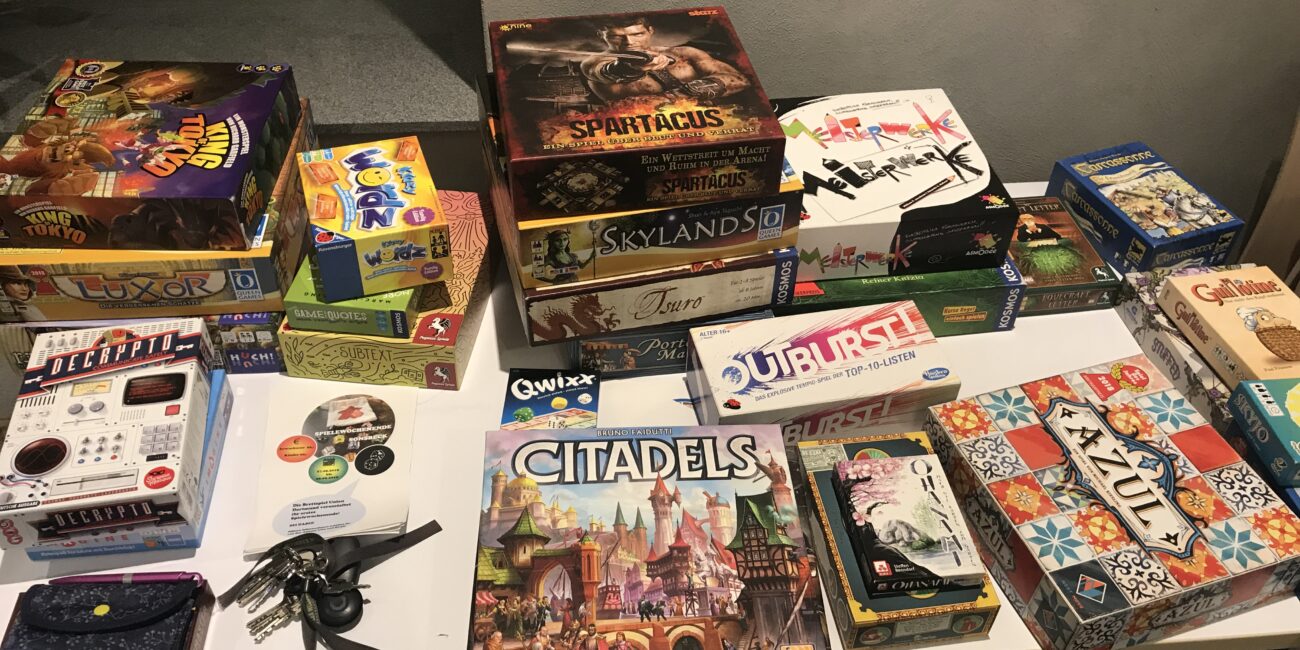 Und auf den Tischen tummelten sich viele Spiele. Zum Beispiel Luxor aus dem Hause Queen Games, bei dem wir in das Innere einer Pyramide straucheln, um Schätze zu bergen. Hektisch wurde es bei Galaxy Trucker, dem schnellen und flinken Bauspiel, wo wir Raumschiffe bauen, und uns vor Meteoriten schützen wollen. Aber noch andere Spiele füllten die Tische: Rajas oft he Ganges, Ringmaster, Skylands und viele weitere machten die Tische bunt.