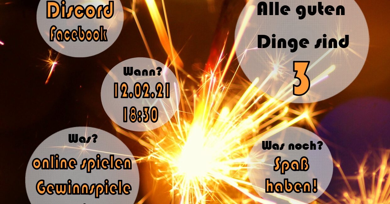 Wir haben – wie wir finden – großartige Neuigkeiten für euch! Die Brettspielunion Dortmund wird 3 Jahre alt. Wow. Wir sind mega geflashed davon. Wie in den Jahren davor wollen wir das auch in diesem Jahr gerne feiern. Und wer schon länger dabei ist, weiß, wie legendär unsere Partys sind. Da hält uns auch die aktuelle Situation nicht auf! Wir laden euch alle am 12.02.2021 ganz herzlich ein, mit uns einen der geilsten Online-Abende eures Lebens zu haben! Ab 18:30 startet die Discord-Party und über den Tag verteilt landet der ein oder andere Beitrag auch auf unserer Facebookseite. Wie findet ihr uns im Discord? https://discord.gg/NPPTNmhAnA Das ist der Link. (Dort sind wir im übrigen jetzt auch immer Freitags zu finden 😉 ). Seid nicht scheu, falls ihr euch in diesem Bereich noch nicht gut auskennt. Ihr braucht nicht viel, um dabei zu sein (Mikrofon und Lautsprecher bzw. Headset genügt) und wir haben jemanden abgestellt, um euch mit Rat und Tat zur Seite zu stehen. 🙂 Was euch im Detail erwartet, verraten wir an anderer Stelle, jetzt heißt es ersteinmal: