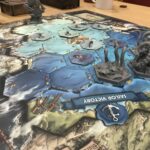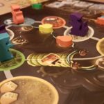 Was lag denn alles auf den Tischen? Eine Menge. In Honey Buzz zum Beispiel wurden Waben gebaut und Arbeiterbienen auf die Wiese geschickt. In Arche Nova wurden Tiere gesammelt und der Spieletisch voll mit Karten und Material gelegt. In Azul Die Gärten der Königin wurde Gehirnschmalz in die Erbauung eines prachtvollen Gartens gesteckt. Bei Brew kämpften die Spielenden via Würfeleinsatz um die Herrschaft in Wäldern. In Pecunia Non Olet wurde Kacke aus der Latrine gefischt. In Flick of Faith schnipsten Götter sich persönlich vom Stuhl. In Welcome Back To The Dungeon siedelten sich finstere Wesen zusammen. In Old London Bridge wurde selbige mit Häusern bebaut und diese ständig aktiviert. In Meeple Land wurde ein Freizeitpark zusammengepuzzelt, und und und. Ihr lest schon, einiges lag wieder auf den Tischen. Es war echt schön – wieder einmal.