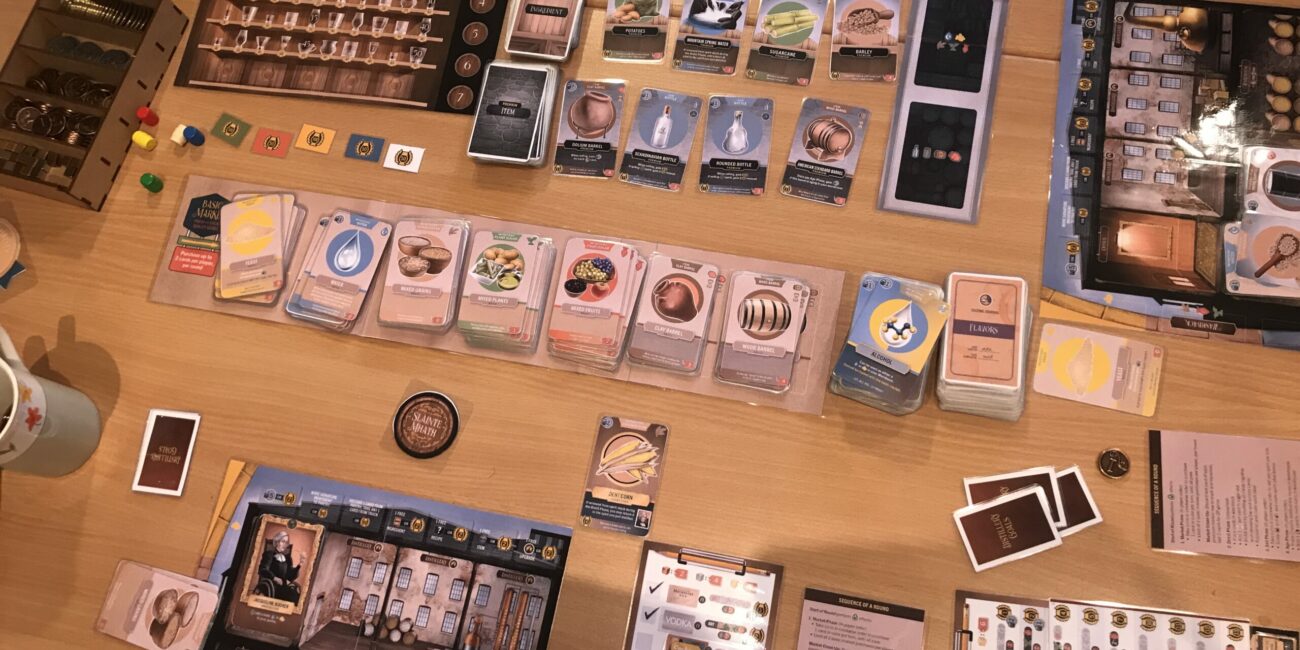 Voll. Ja, voll war es. Der Raum, der sonst schon bei 35 Menschen an seine Grenze stößt, wurde mit über 40 Menschen zu seinem “dicht-an-dicht”-Sitzen. Voll waren auch die Tische, denn allerhand Spiele wurden ausgepackt und gespielt. Menara, Aufbruch zum Roten Planeten, Destilled, Armageddon, Skyjo, Fyfe, First Rat, Space Base, Great Western Trail, Feed The Kraken, Renature, 9 Minute Kingdom und und und. Ihr lest schon, und könnt auch weiter unten ein paar Bilder sehen, es war voll auf Platz und Tisch.