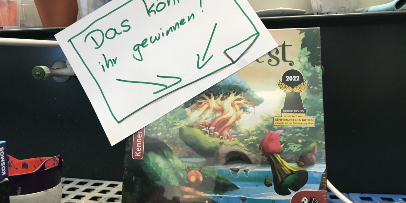 An gleich zwei Tischen wurde ohne Pause eine Partie nach der nächsten gespielt, und beinah alle Besuchenden konnten sich Eindrücke vom lebenden Wald machen, der 2022 mit dem grauen Pöppel zum Kennerspiel des Jahres ausgezeichnet wurde. Neben dem spielerischen Highlight hatten alle Teilnehmenden die Chance auf einen Gewinn, denn die UZWEI stellte erneut einen Preis, über den sich eine Gewinnerin außerordentlich freuen konnte. Wir gratulieren noch einmal ganz herzlich an dieser Stelle zum Gewinn.