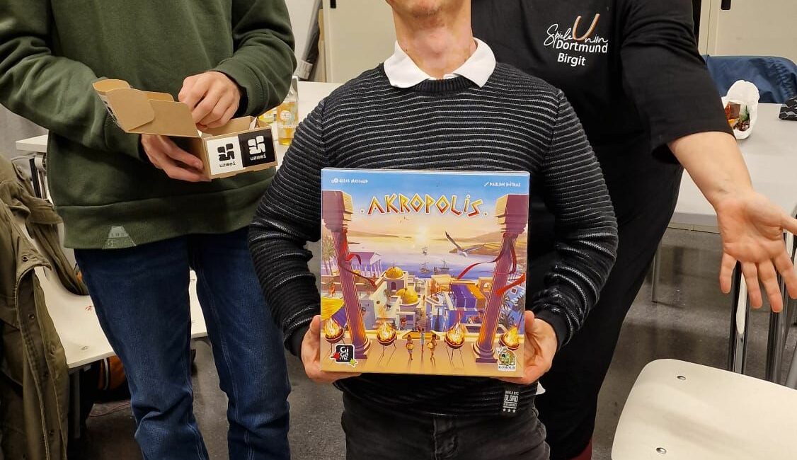 Im Monat November wurde gelegt und gebaut und gepuzzelt und geknobelt, denn das Thema Plättchenlegespiel stand im Fokus der Meeple Nacht im U2. Das neue Legespiel „Akropolis“ stand hier exemplarisch für diese beliebte Mechanik in Gesellschaftsspielen. Und genau das wurde dann auch am späten Abend verlost.
