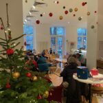 Mehr als eine halbe Stunde vorher war der Raum fertig eingerichtet, und die über 10 Helfenden warteten auf die Gäste, die ab 11:00 Uhr eintrudeln konnten. Der Raum war erfüllt mit leuchtenden Spielen, herrlich duftendem Kaffee, leckerem Plätzchengeruch und aufgeschlossen und zugewandten Menschen. Es konnte losgehen.