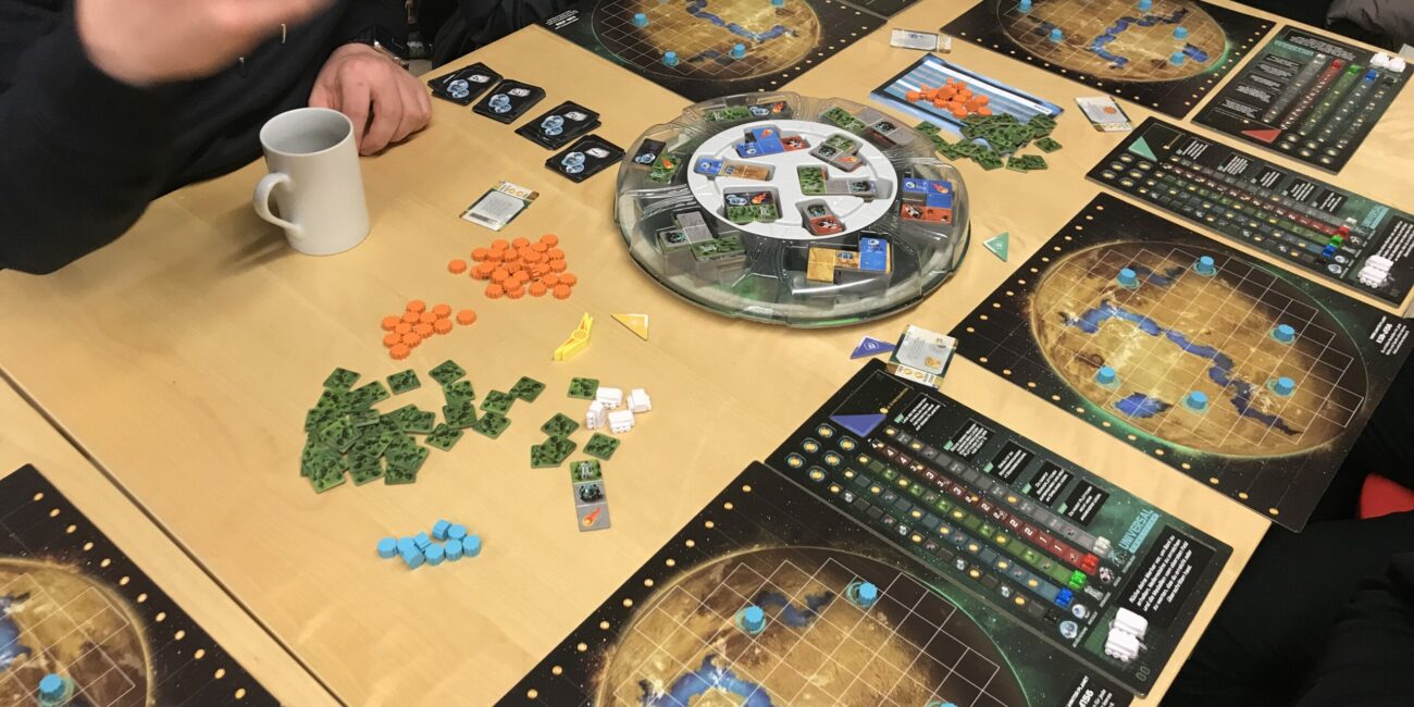 Viele Taschen waren gefüllt mit Spielen und diese wurden reichhaltig gespielt. Währen an manch Tischen eher leichtes und zugängliches Spiel gespielt wurde, so bauten an wieder anderen Tischen so manch Menschen richtige Klopper auf. Ihr könnt gerne in der Bildergalerie schauen, was alles (und noch mehr) an diesem einem Abend alles auf die Tische kam.